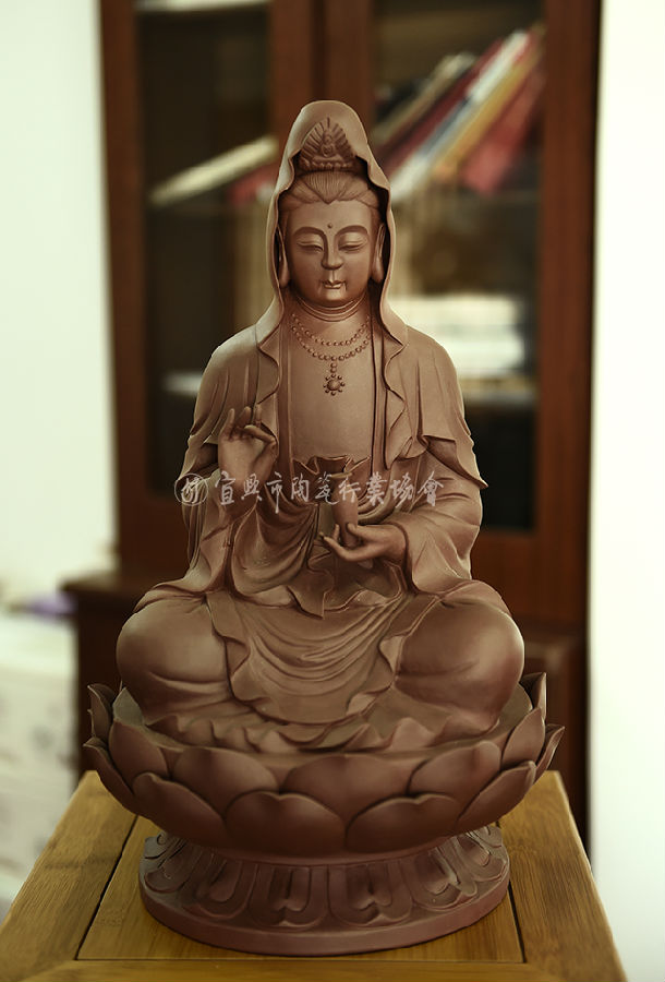 正高级工艺美术师正高级乡村振兴技艺师1953年出生于陶都宜兴,1972年进宜兴紫砂工艺厂随师傅中国工艺美术大师徐秀棠学习紫砂雕塑创作。1975年又向徐汉棠、吕尧臣、汪寅仙等大师学习制壶技艺。故具有雕塑与壶艺的扎实功底,并将佛学等悟性渗透于作品,细腻生动,特别对佛教神像颇有研究。作品造型庄严神圣,气势非凡,实为佳作。作品多次获奖,其在东南亚一代有“观音李”之称。《仿明观音》《静瓶莲坐观音》《莲意》《莲运》《如意宫灯》《圣桃》 (以上图片资料均由作者本人提供)