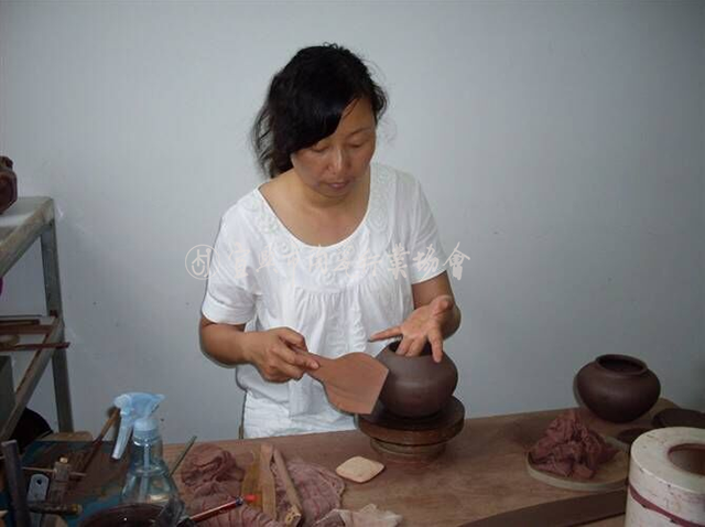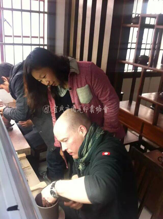 指点国外友人学习紫砂制作
