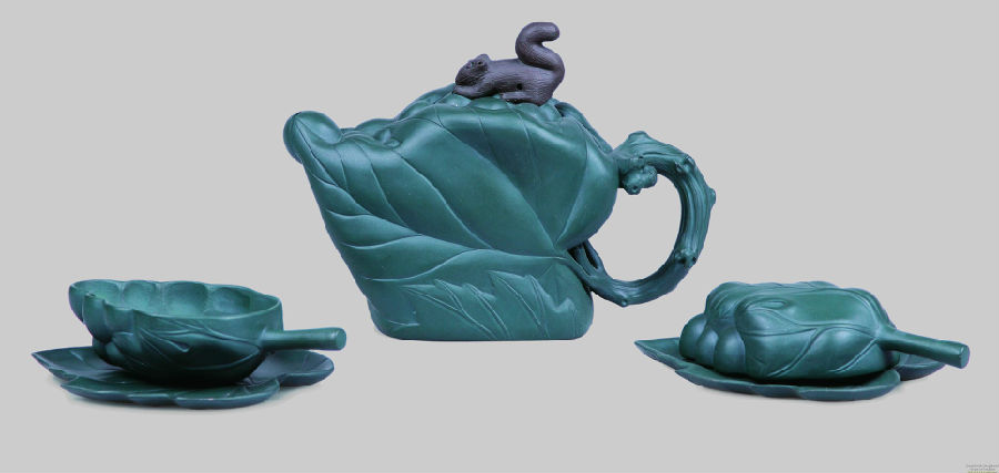 《五件葡萄松鼠茶具》