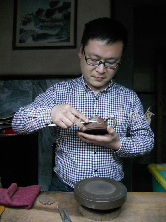 工艺美术师1979年出生于陶都宜兴丁蜀镇,自幼受紫砂文化的影响酷爱紫砂壶艺,学校毕业后跟随舅舅中国工艺美术大师徐秀棠大弟子赵洪生学习壶艺创作。后拜中国工艺美术大师汪寅仙弟子丁洪顺为师。在多年刻苦钻研与实践过程中,练就了扎实的基本功。再拜中国工艺美术大师吕俊杰为师。作品立意新颖,造型古朴端庄,线条流畅,并在原有基础上大胆创新。作品曾多次在国内评比中获奖,并深得各界爱壶者的喜爱与收藏。《禅德》《德韵》《明式》《牡丹壶》《三足石瓢》《竹段壶》 (以上图片资料均由作者本人提供)