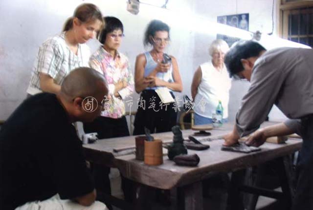 向外国友人展示紫砂制壶技艺