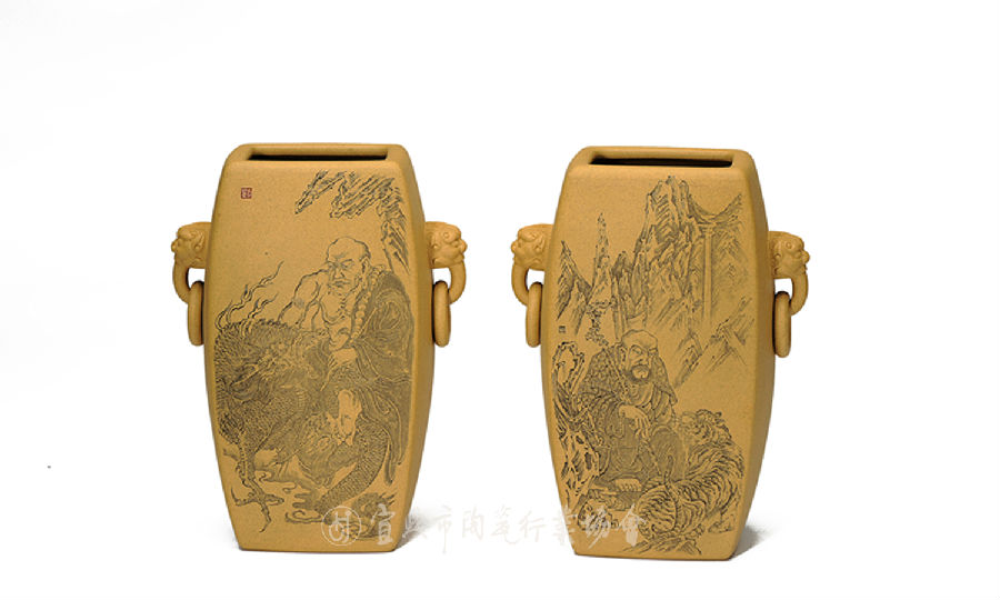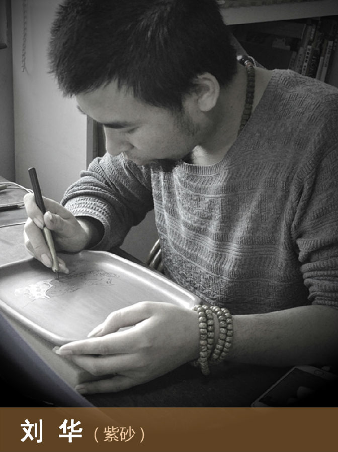 刘华别署慕山、御风堂主人,出生于1985年河北无极人氏,现居宜兴。年少习书画,及长就读于南京艺术学院国画系,书画师从张友宪、方骏、徐建明先生。陶刻师从中国陶瓷艺术大师毛国强先生,陶刻作品多清新雅致,题材甚广,山水、花鸟、人物无所不刻,尤精人物。所刻作品皆略定轮廓操刀直入,运刀沉稳潇洒而不失法度,或繁或简巧思布局,艺术面貌渊穆清华、静谧淡雅,形成了自己潇洒清逸、寓柔秀于阳刚的清劲刻风。