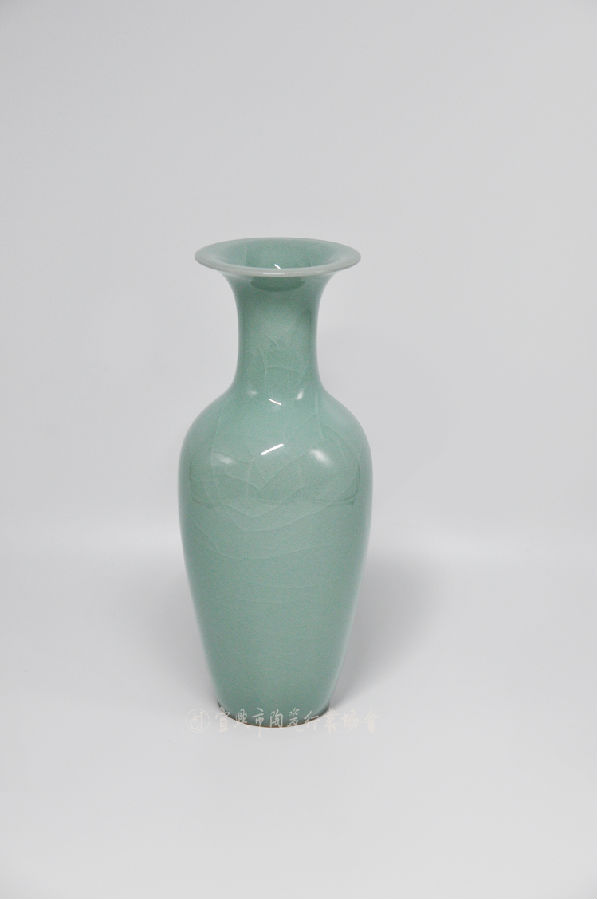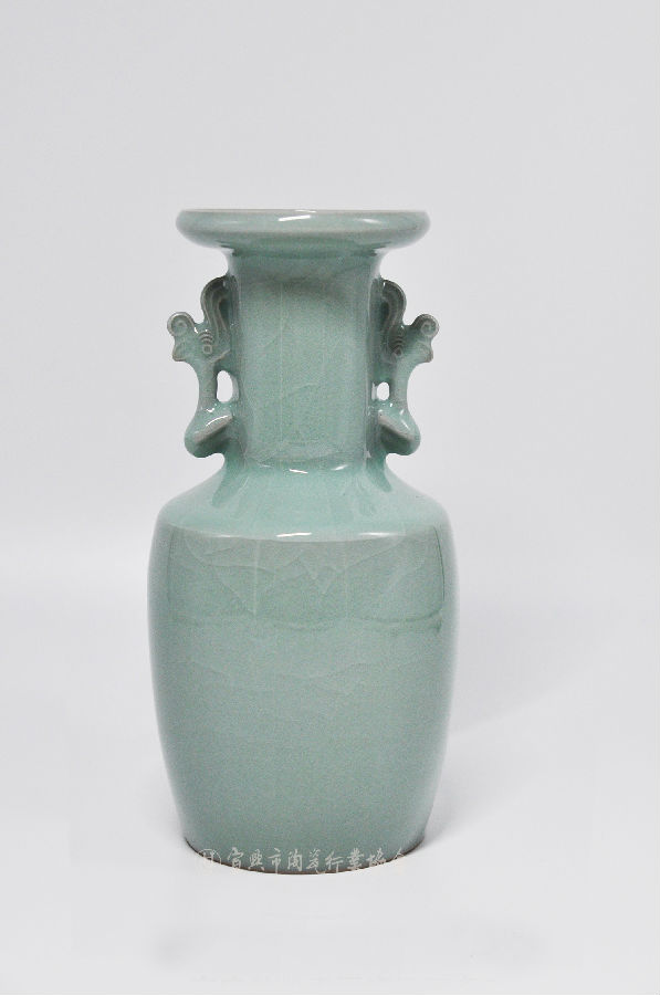 《南宋款粉青哥窑凤耳盘口尊》
