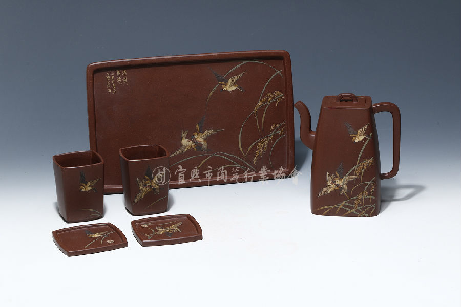 工艺美术师乡村振兴技艺师1978年出生于江苏宜兴,工艺美术专业毕业,就学期间得名画家邵家声指导;1996年师从陈瑜学习刻绘,后师从郑求标学习泥绘。其泥绘作品自出机杼、别具一格,具有鲜明的个人特色,多次在全手工制陶大赛上获奖。《大彬如意》《砖方》《秋郊雀嬉套壶》《就方壶》《汉方》《井栏》 (以上图片资料均由作者本人提供)