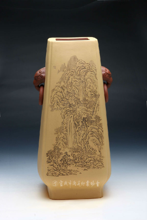 擅长山水、花鸟的绘画和雕刻。多以小写意为主要风格,注重画面的意境感,能根据紫砂器皿的造型进行刻绘的布局,使其达到完美的结合。