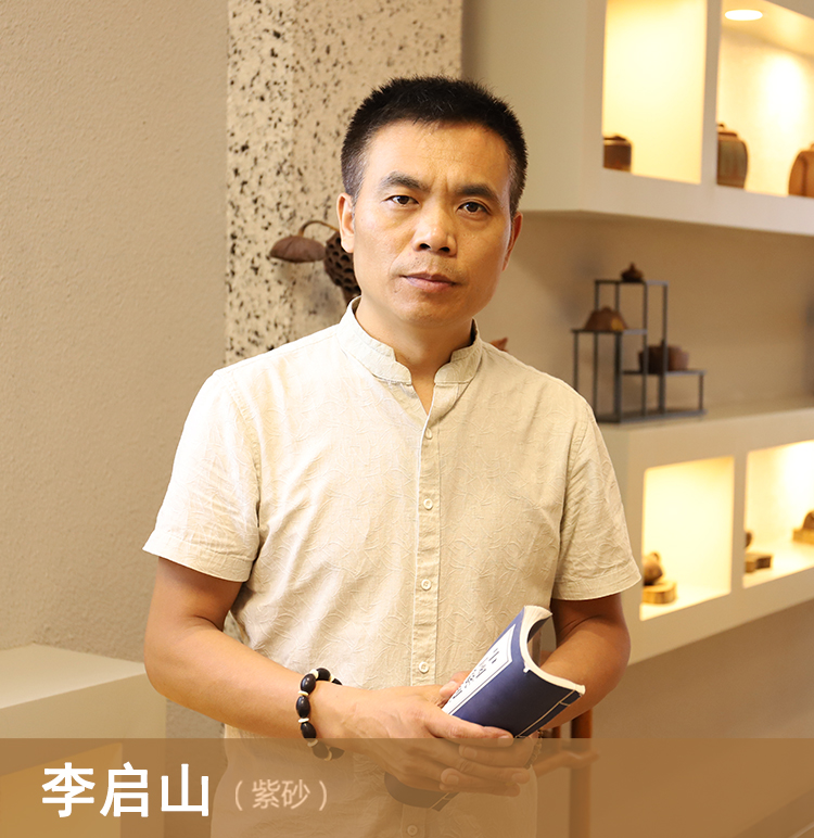 李启山,又名李岩,号紫岩村夫,青年陶艺家。1971年5月10号生,原籍江苏省宿迁市人,自幼喜好美术与摄影。1989年来宜兴,游艺于宜兴乡村黄龙山下,转战在陶都南北,1995年后开始接触紫砂壶。凭借着对于紫砂艺术的爱好,和多年的摄影功底,开始了一次人生的转折,踏上了新的路程——紫砂陶刻。他刻苦求学、拜师学艺,先后学会多种在紫砂作品上装饰与制作。尤其喜欢古朴、简洁、大气的秦汉文化,并收藏了数百余张汉文化拓片,同时在其创作的陶刻艺术作品中融入汉文化风格与韵味,在紫砂作品上娴熟运用汉刻、篆刻、泥绘、平绘等装饰手法,融诗、书、画、印、刻、绘于一体,从而形成了其古朴大气、浑然天成的艺术风格,穿透着一种返璞归真般的人文气息。作品得到了众多藏家和艺术机构的肯定,更被多家博物馆、拍卖公司与私人藏家所收藏。