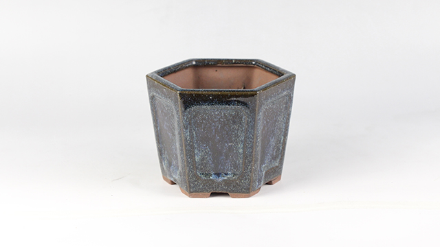 六方蓝均釉花盆