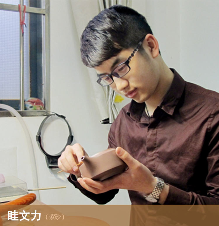 1991年出生于著名的陶都宜兴,在父辈们的熏陶下,刻苦勤奋,谦虚好学,从小就对紫砂产生了浓厚的兴趣。眭文力毕业于南京师范大学,得到多位制壶前辈和制壶名家的悉心指点,技艺日益精湛,集百家之长,凭着与生俱来的审美感、跳跃的思维、善于吸取古典艺术精华。作品简洁大方,浑厚古朴,气韵清灵,形意飘逸,十分注重线与型的结合、神与气的表现、作品多次参加国内展出,深受国内外壶艺爱好者的喜爱与收藏。并意在要将纯正的紫砂泥、精良的制作工艺集于一身,将紫砂艺术点缀地更加璀璨!