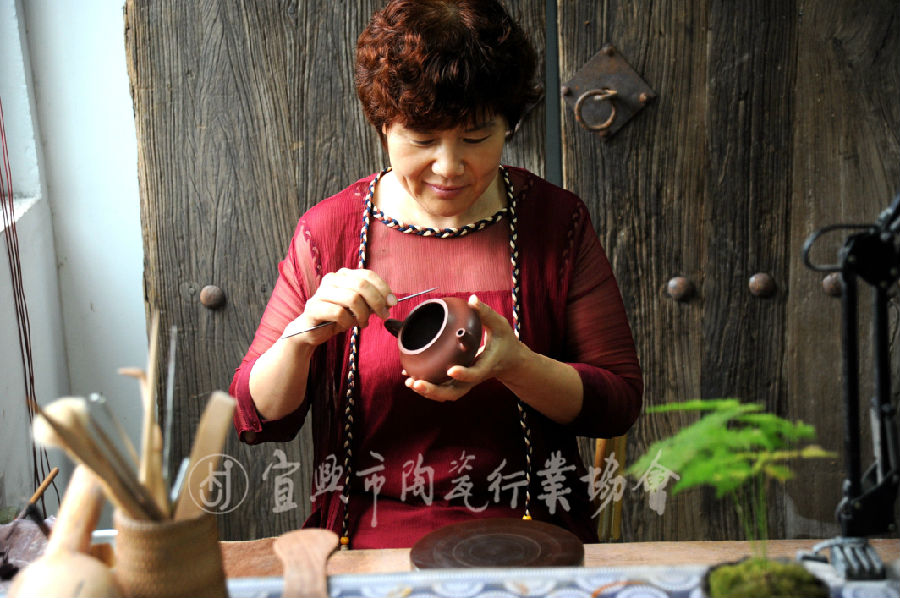 多年来秉承全手工制壶技法。光、素器造型极具素养,尤其善作紫砂花器。在30多年的实践创作中逐步形成了自己特有的风格。
