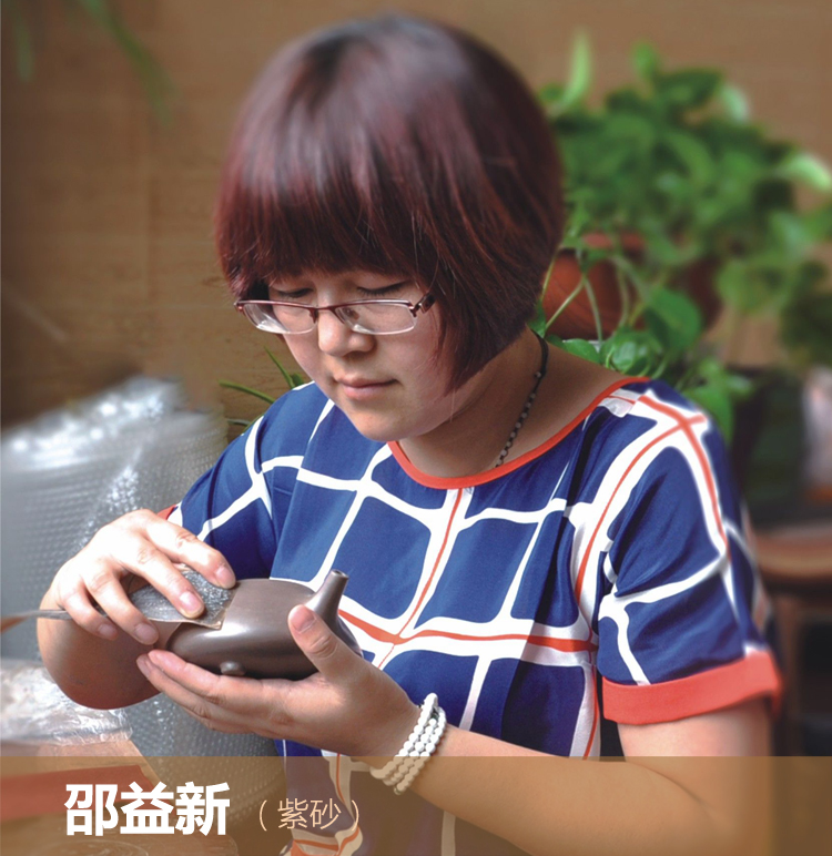 1977年出生于紫砂发源地紫砂村,受家庭氛围的影响,自幼喜陶,从事紫砂事业多年,先后受诸多名师指点,师从正高级工艺美术师、江苏省陶瓷艺术大师、江苏省工艺美术大师邵顺生,在大师的悉心指导下,以传统艺术为基础,现代美学为理论,扎实的功底使她的作品独具特色,从生活中寻找艺术的灵感,在实践中寻找突破。多年的刻苦学习创作,积累了丰富的制壶经验,善于吸取古典艺术之精华结合现代美学。作品简洁大方,古朴,典雅,线条流畅挺括,艺术语言寓古于新,散发浓郁的东方艺术特色,作品屡次获奖,深受各界爱壶人士及收藏家的喜爱。