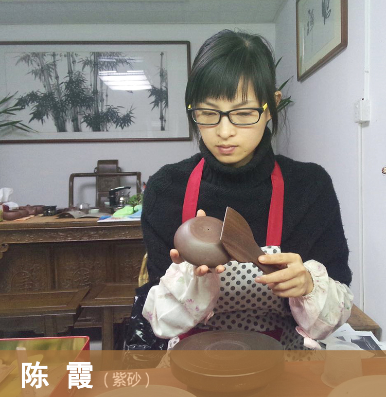 1983年生,师从秦午南老先生(获得吉尼斯纪录“最扁的壶”)。我是个“左撇子”,从学习右手制壶到后来双手任意切换,我付出了很多艰辛。另外我对自己的要求比较高,每一把壶的比例、嘴把搭配、线条转折等等都会认真研究。紫砂行业博大精深,涉及书法,绘画,造型设计等。过去,我把大部分的时间和精力都用来研究紫砂和做壶;对于未来,我想分出一点时间走出去看一看,学一学,希望以更好的姿态,呈现给大家更好的作品。2017年艺术设计专业本科毕业;2018年参加丁蜀成校制壶提高班培训。