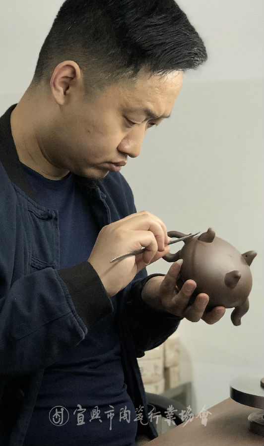 1981年生于江苏宜兴,艺名大顺。从小爱好绘画,书法,设计。2006年跟随民间实力派高手吉尼斯世界纪录紫砂最小壶创作者周珏伟学习紫砂壶全手工创作。在周师傅的带领下,他的紫砂创作突飞猛进,风格上推陈出新,揉合自己的审美观点,充分利用紫砂五色土的特性表现大自然之灵气。制壶中做巧妙装饰,使平凡之作充满活力,在光器,花器,筋纹器等领域都有自己的独特简介,尤其擅长创作如意,作品大气典雅,造型别致,深受紫砂收藏爱好者的青睐。他创作的壶,在传统器型中巧妙融合,越物体表象而去关注其精神,追寻精神世界的规律与变化,把现代感设计理念融入制壶中,从而达到精神与想象的统一,充分表达出人文壶的意境。在今后的制壶道路上,带着一份温暖,好好生活,好好创作……