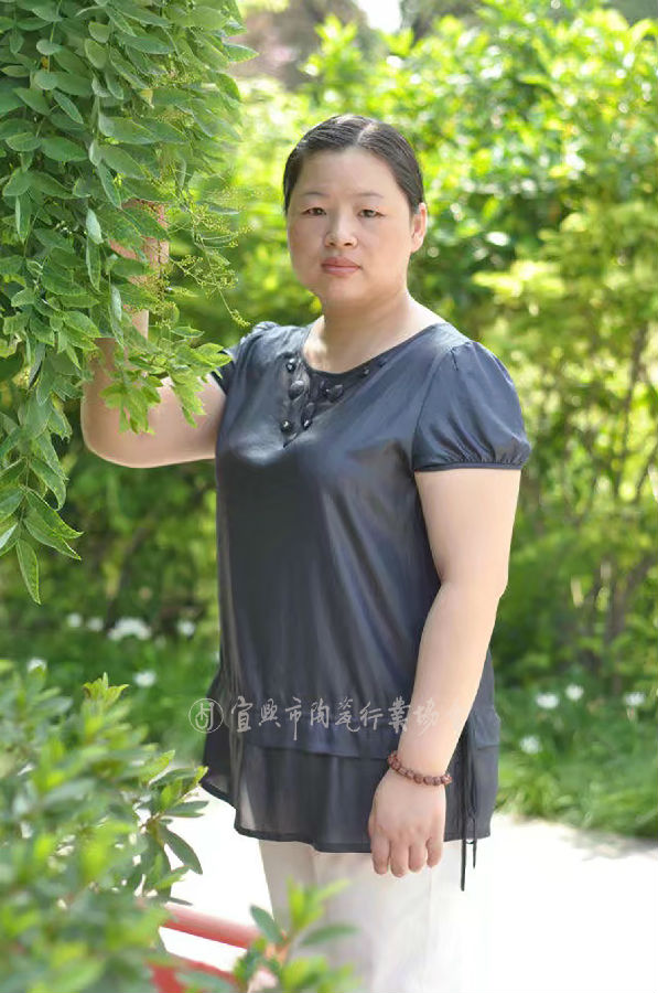 1973年生,1991年进入紫砂二厂研究所,拜高级工艺师范建荣为师,学习紫砂壶的设计与成型,1998年随夫创办“盛陶壶艺”。后拜研究员级高级工艺美术师,江苏省工艺美术大师范建军为师,其作品在传统的基础上融入自己的情感,修养,区别于传统,区别于他人,不断的创新。使其整体造型与品饮功能、视觉、触觉、美感融为一体,构思新颖、视觉独特、深受壶艺界同仁的好评与肯定。
