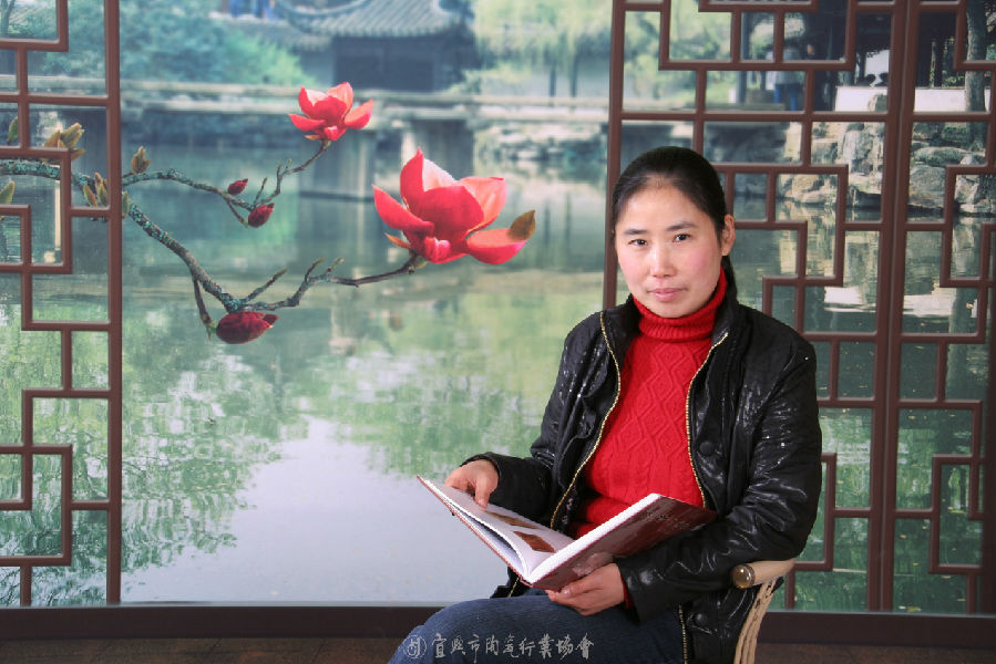 1972年生于陶都丁蜀镇,从小在泥凳边长大,紫砂陶的高雅艺术熏陶着她的童年。1988年考入江苏省宜兴轻工业学校陶瓷工艺专业,四年的理论学习使他对紫砂陶有了系统的理性认识,九二年进紫砂工艺厂从事紫砂壶的设计与创作,师从江苏省陶瓷艺术大师陆君,良好的理论素养,恩师的言传身教,加上自己的不断摸索,使她的天赋和才华得以在紫砂艺术的殿堂里自由的驰骋,她对紫砂陶有了全面的感性认识,逐渐形成了自己的制和风格,既能创造简洁概括的几何形体的光货,更擅长创作象形取义的自然形态的花货作品,惟妙惟肖,富有生活气息,多次在手工制陶大赛中获奖,《银杏壶》获第15届中国(国家级)工艺美术大师精品博览会金奖,作品深受海内外壶友的喜爱,20多年的创作生涯,使她更深刻地认识到学无止境,我们将不断努力,为繁荣紫砂文化做出我们的贡献。