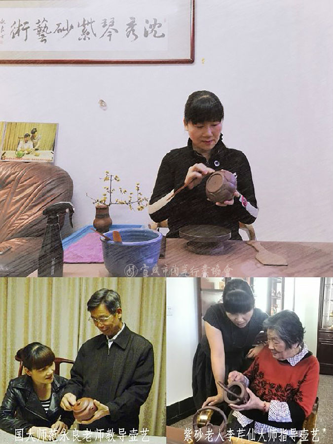 1967年生于陶都宜兴,1989年四年制中专毕业,后即从业陶艺,师从原紫砂工艺二厂副厂长及总工艺师、现中国陶瓷艺术大师范永良先生。至今从业三十年,始终坚持不断的技艺磨练和壶艺创作,在诸多的行业前辈老师关怀帮助下,也凭借自身对紫砂文化内涵的认识和领悟,已形成独特的艺术风格。工于传统器形,创作形式多样,作品给人以生机盎然、灵动飘逸的美感,深受业内外的广泛认可和好评,并为众多藏家青睐。代表作品:六件套青蛙莲心壶茶具、竹段提梁壶、大彬六方壶、八方菱花壶、吉祥凤鸣壶等等。近期荣誉:2015年通过国家职业资格陶瓷工艺手工操作高级工技能鉴定考核;2015年获得陶都丁蜀镇“最美家庭”;2015年获得第十七届国家大师级精品博览会金奖;2016年作品由徐悲鸿美术纪念馆收藏;2018年荣获宜兴市丁蜀镇“三八红旗手”。
