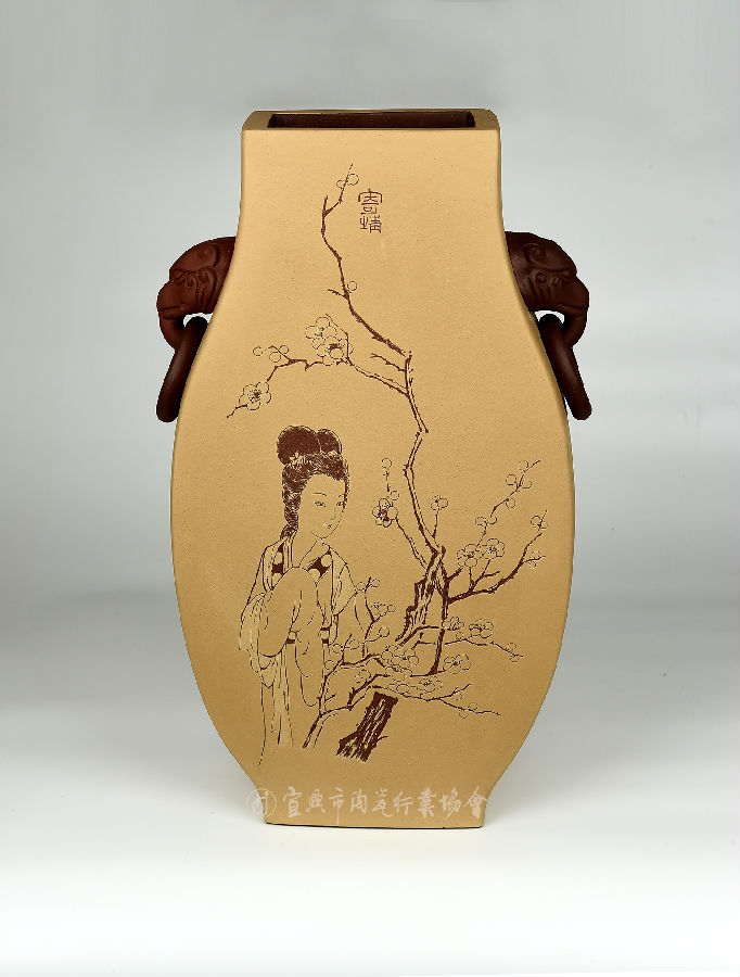 《陶刻双耳瓶 刻画》
