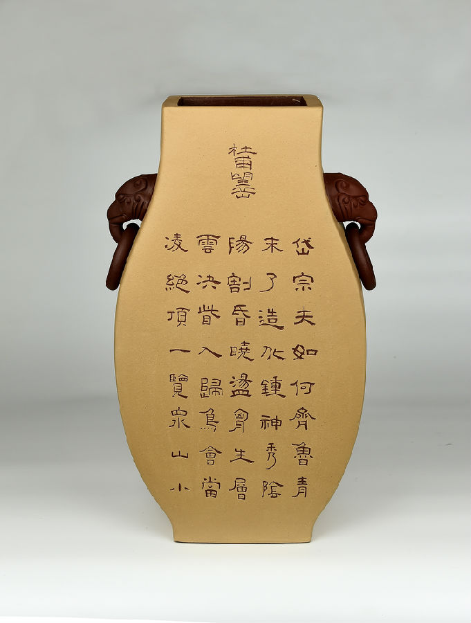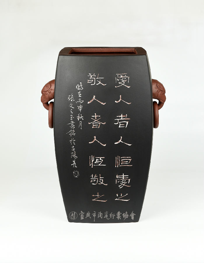 《陶刻双耳瓶 刻字》