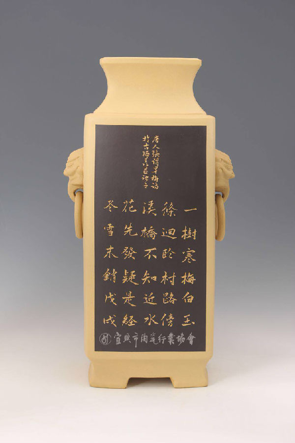 《狮纽四方瓶》