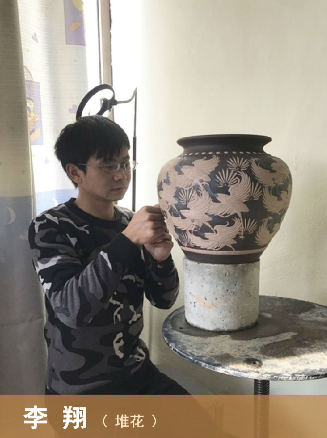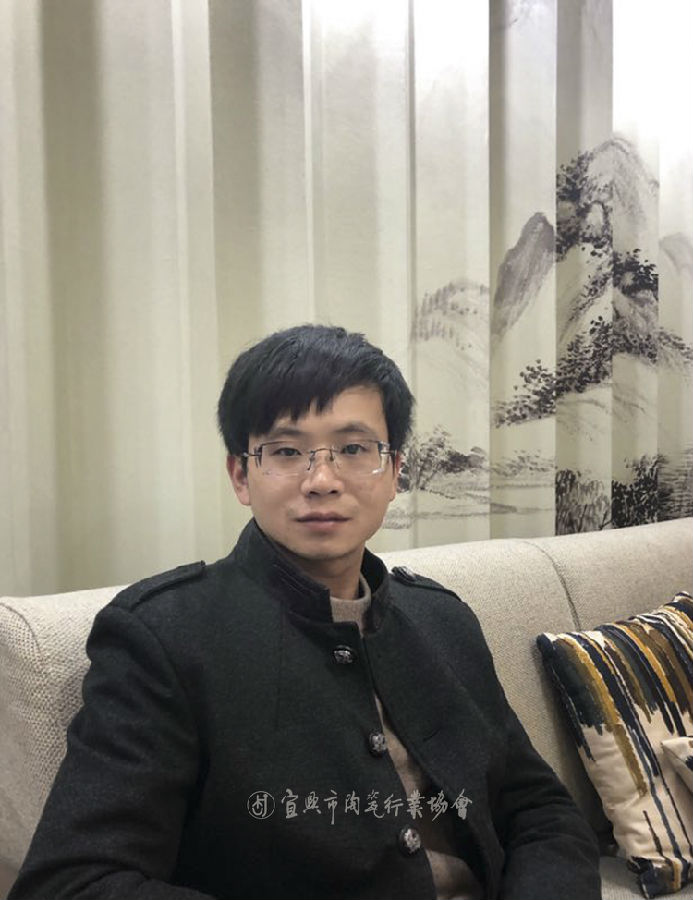 1991年10月出生于江苏宜兴,本科文化。2013年拜张亮为师入门学艺,再经中国陶瓷艺术大师李守才指点,从事堆花工艺创作设计工作至今。几年中刻苦学习,不断研究堆花工艺技法,在继承传统民间堆花工艺基础上,大胆赏识,利用色泥多种表现手法及器皿材质的变化,达到了堆花工艺的装饰艺术效果,形成了自己独特的个性化艺术。2015年,作品《凤串牡丹》被徐悲鸿纪念馆收藏;2017年,获首届“均陶杯”银奖。在均陶艺术这一广阔天地里,学海无涯,艺无止境,传承、弘扬均陶艺术,必须不断学习和进取,努力成为杂家,做到静中观物化,学时寻真谛,取众家之长,补自身之短,不断求索,努力创新,为陶艺爱好者创作出更多更好的均陶优秀作品。