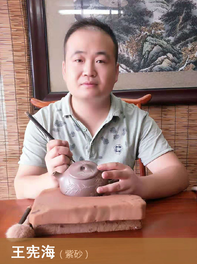 助理工艺美术师中国陶瓷工业协会会员1984年4月24出生,泰州,兴化市人,2005年来宜兴学习紫砂壶制作和装饰,2010年成立个人工作室(海风陶坊)后进修于中国(北京)地质大学,工美大专学历,青年陶艺家,作品重意境,陶刻技艺全面,作品不断推陈出新,为完善自己个性化艺术努力耕耘着。《霸王瓢》《大富贵》《六方壶》《龍尊》《秦权》《如意半月》 (以上图片资料均由作者本人提供)