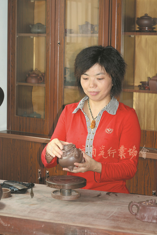 高级工艺美术师中国工艺美术学会会员江苏省陶瓷艺术委员会会员1968年出生于陶都宜兴,1984年进入紫砂工艺厂,从事壶艺制作与创新,师从正高级工艺美术师周尊严,期间进入中央工艺美术学院陶瓷造型设计学习深造。经过二十多年的勤奋研究和创作实践,逐步形成了自己的艺术风格,在传统中力求变化,作品气韵清秀,形意飘逸,文化气息浓厚。作品曾在国内外展评中获奖,深受各界人士赏识并收藏。《清风竹影》《祝福提梁》《蝶恋花》《汉韵套具》《如意鼎》《竹段壶》 (以上图片资料均由作者本人提供)