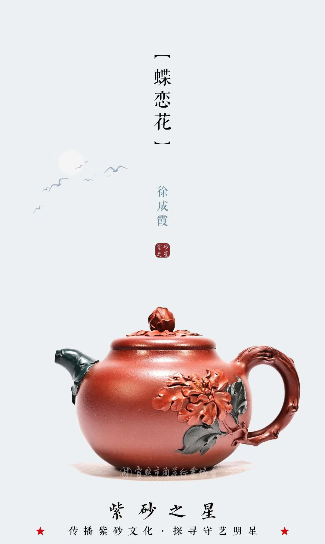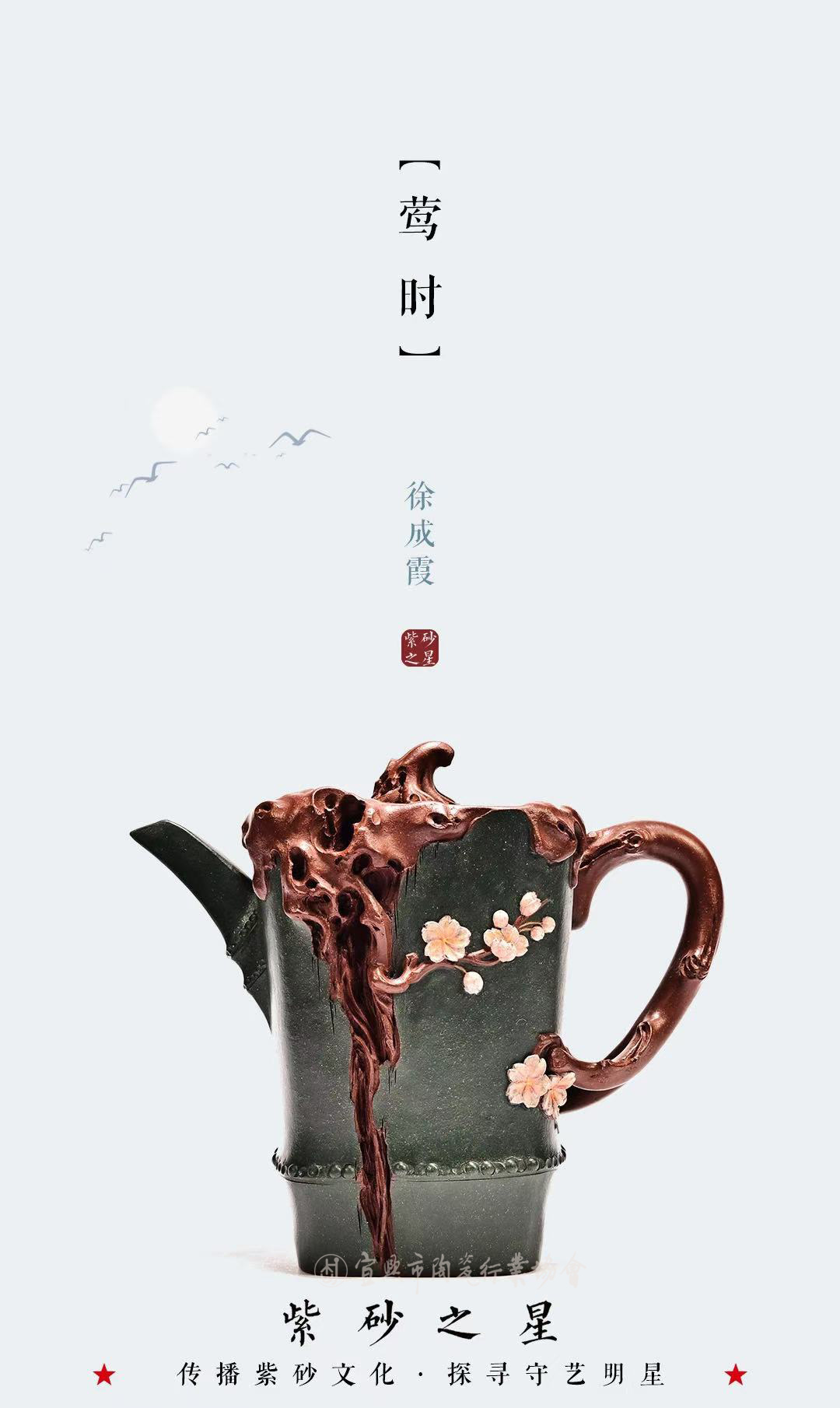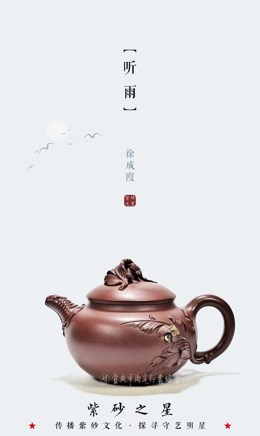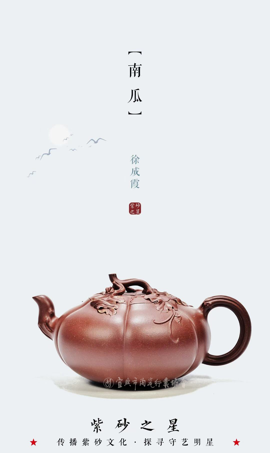 工艺美术师乡村振兴技艺师宜兴市书法协会会员出生于1996年8月12号,江苏大学艺术设计专业,本科学历。师从蒋蓉传人钱午生(国家级正高级工艺美术师)潜心壶艺,擅长花器艺术创作。从艺期间还受到多位大师的悉心指点,对历代经典茗壶进行了认真研习揣摩,并不断从壶外艺术中汲取营养,积累提高,在长期的创作生涯中逐步形成了“古朴大方、端庄优雅”的个人风格。八岁开始学习书法、绘画、紫砂陶刻创作至今。《南瓜》《蝶恋花》《莺时》《寿桃》《听雨》《圣桃壶》 (以上图片资料均由作者本人提供)
