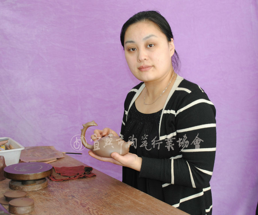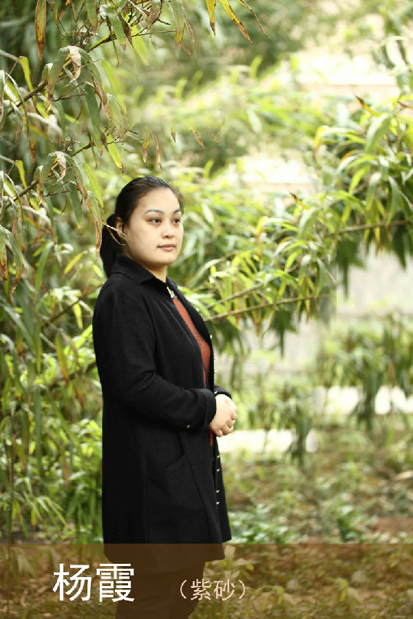 1980年9月出生于宜兴陶都,毕业于中国地质大学(陶瓷)艺术设计专业。2005年创办“五色富贵土”陶瓷艺术中心,任总工艺师。从艺十多年,期间受到多位大师的悉心指导。她潜心壶艺,对历代经典茗壶进行了认真研习揣摩,并不断从日常生活中汲取营养,积累提高,对紫砂陶艺的泥料选择、造型设计、制作技巧等精益求精。光素器作品比例、线条恰到好处。花器作品花中有趣,自然求真。杨霞的紫砂作品大气、豁达、洒脱中也蕴含着女性的秀丽与和美。作品深受海内外众多收藏爱好者的珍爱,并多次获奖。近年来,许多精品之作被多家博物馆收藏,为陶都青年一代中的佼佼者。