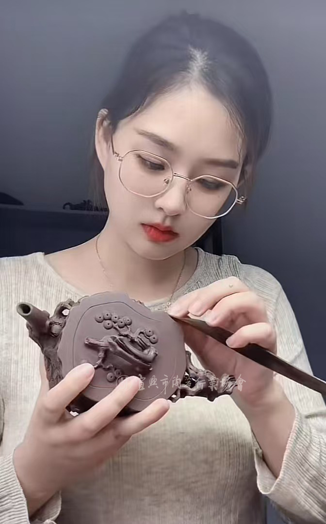 壶艺随着人生的阅历日臻成熟,求索与坚持,已然让她的作品从单纯的写实转化为意境的表达。一把壶就是一个情景,她以女性的细腻情感和活力,表达了一个个更生动的江南韵致。