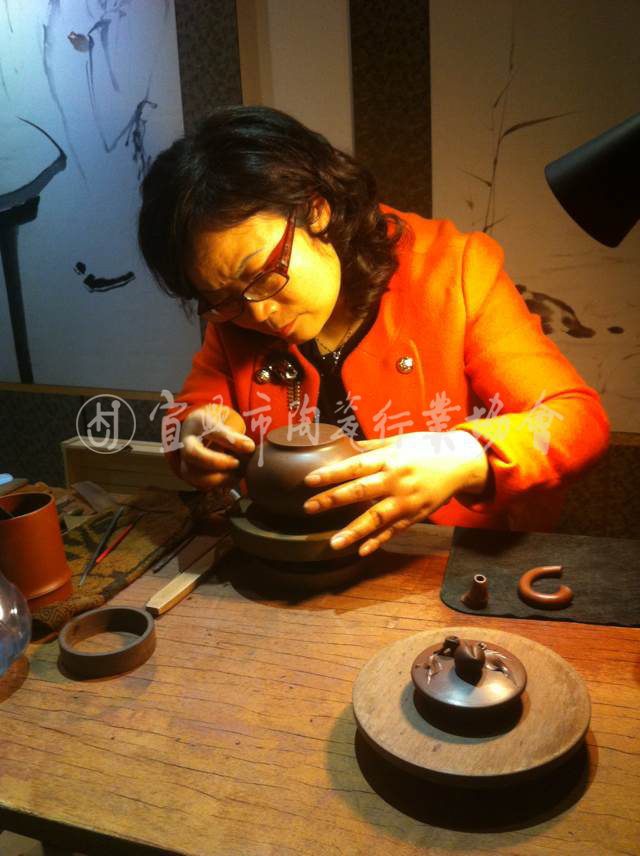 2012年正式拜师于禅画大师张大华先生门下,成为齐(白石)派艺术第四代传人。同年,当今陶瓷泰斗、造型设计大师,清华大学张守智教授(汪寅仙大师作品“曲壶”设计者)亲自为她设计了“皇冠如意”等三款作品,是对她壶艺水平的莫大肯定。学无止境,艺海无涯,目前“月照十八式”(与禅画大师月照上人合作)等创新作品正越来越得到同仁及收藏界的亲睐。