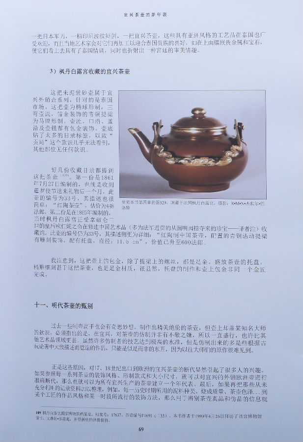 很高兴接受帕特里斯·万福莱先生之邀为本书作序,并对他的开拓精神表示由衷的钦佩。确实,这是第一次有人通过系统的调查研究来揭示宜兴紫砂壶在17世纪如何到达到欧洲的历程。在书中,他以地域、贸易、文化、政治甚至外交为框架,以欧洲为背景,编制了宜兴紫砂壶的新年表,所涉时间持续到19世纪末叶,并逐渐延伸到欧洲之外的国家。在开展所有工作的过程中,作者始终没有忘记紫砂壶的一大功效:泡茶不失其精华,色香味皆蕴。